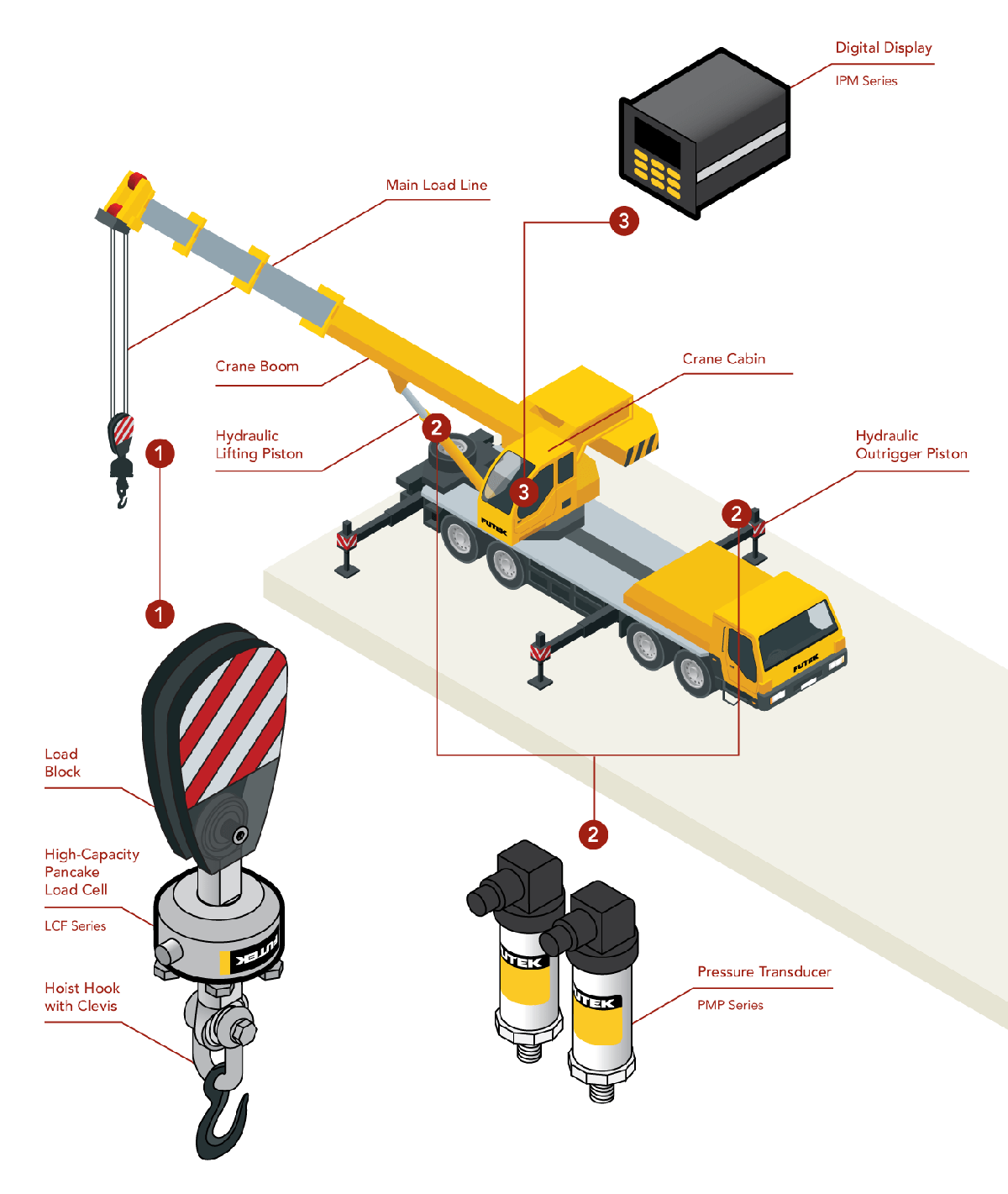 3、除了负载测量,起重机操作员和工程师还可以测量液压提升活塞和外流活塞的压力。活塞压力提供在现有负载条件下对液压臂的超载和重量监测,它表示在提升负载时施加在动臂上的力矩和挂钩振幅。