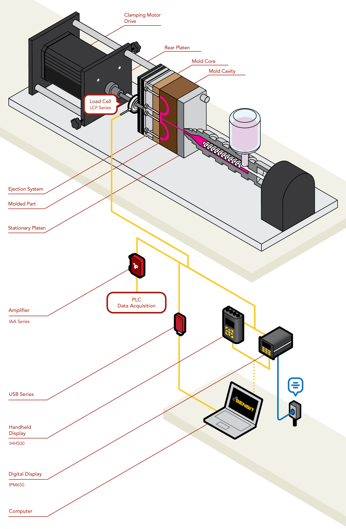 2、当模具因熔化材料而膨胀和收缩时,力传感器向 PLC 反馈新的压缩力。