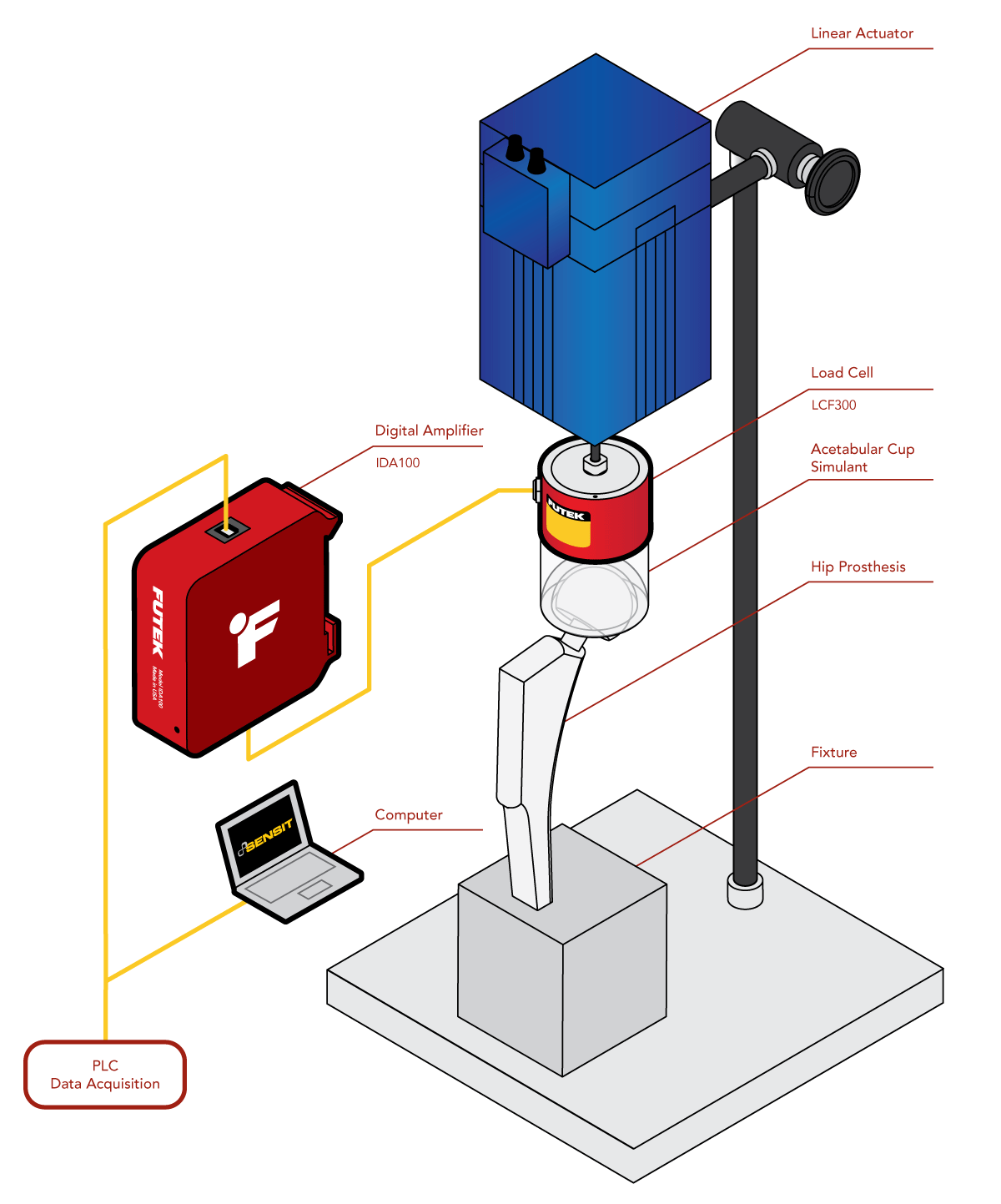 2、然后在髋臼杯和线性致动器之间安装一个 LCF300 轮辐式拉AG平台,用于测试期间的力测量。