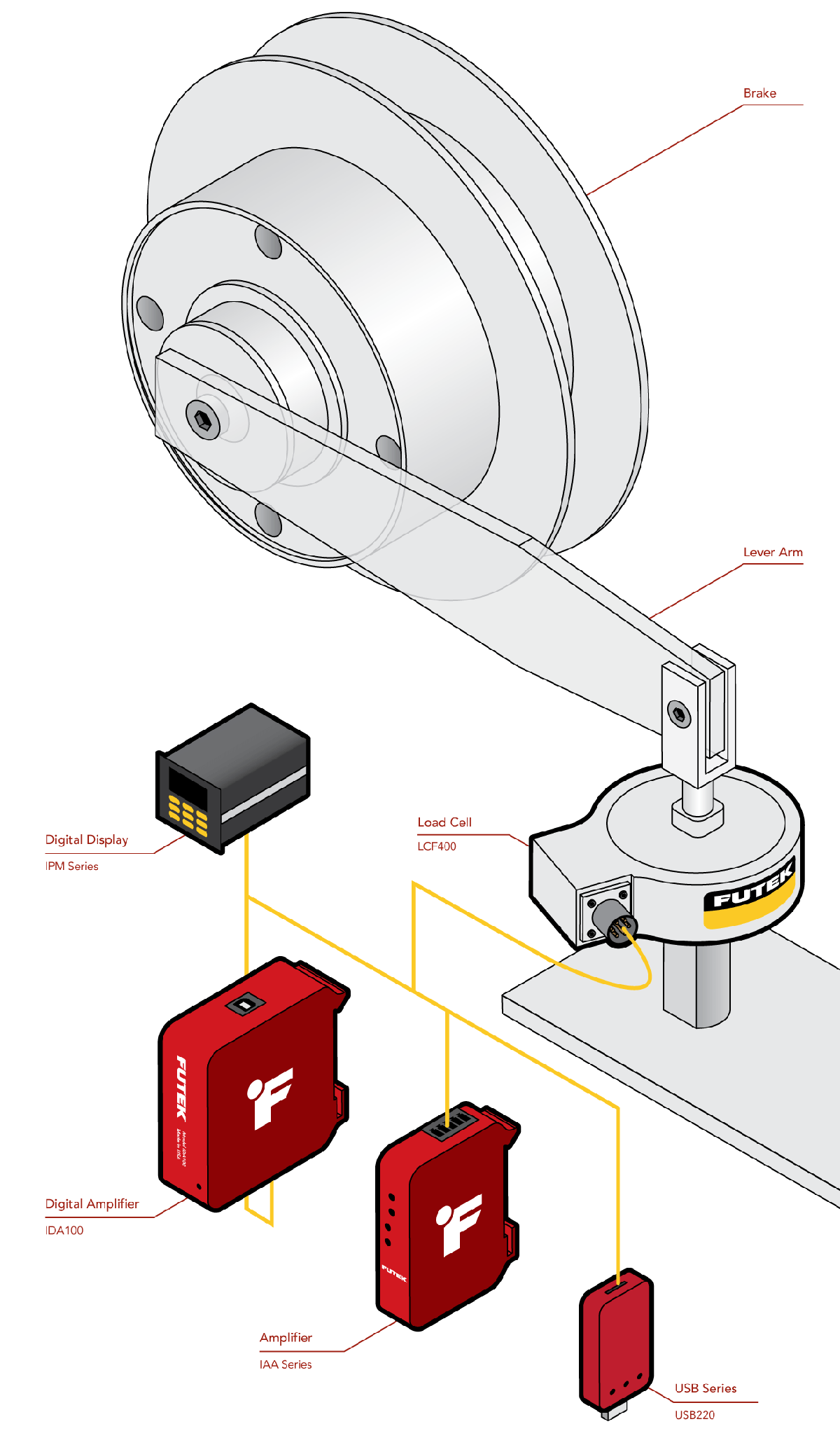 5、LCF400 测量的任何力都可以简单地乘以电机中心的距离,通过方程(扭矩=力 x 距离)获得扭矩。